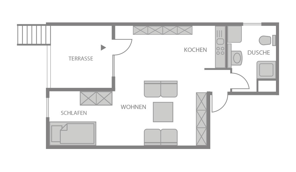 Rauhfasertapete, Laminat, offene Küche - mit EBK, Bad mit Dusche, Waschmaschinenanschluss im Bad, Keller, sonnige Terrasse