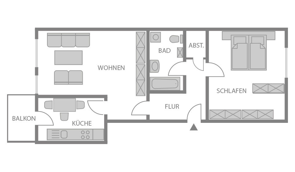 Abstellraum ist vorhanden. Der Balkon ist von der Küche aus begehbar. Ein Keller ist der Wohnung zugeordnet.