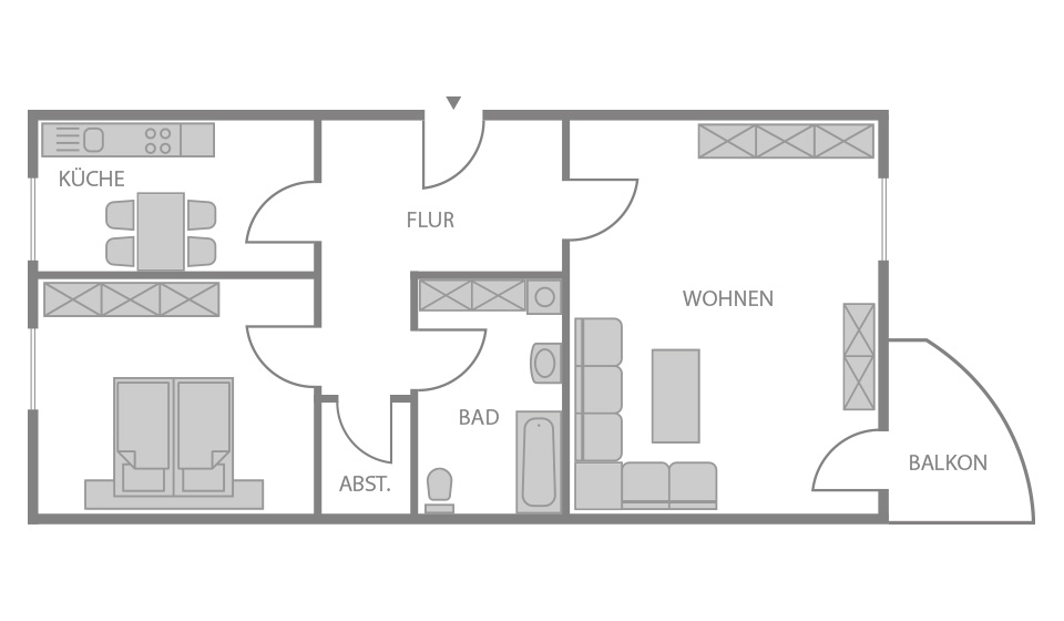 Die Wohnung verfügt über ein innen liegendes Bad mit Wanne und dem Waschmaschinenanschluss. Der Küchenfußboden ist gefliest, in den anderen Räumen ist ein Laminatbodenbelag verlegt. Vom Wohnzimmer aus ist der Balkon begehbar. Ein Keller ist der Wohnung zugeordnet. Ein PKW-Stellplatz kann separat angemietet werden.